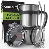 1. CHILLOUT LIFE Stainless Steel Travel Mug 30oz – 6 Piece Set. Tumbler with Handle