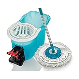 - Mopping Made Easy Self wringing mop easily spins dry with a gentle push on the handle. Dual spout bucket and patented centrifugal spinning design cleans and dries the mop head without getting your hands dirty.