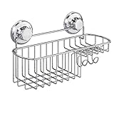 1. HASKO accessories - Powerful Vacuum Suction Cup Shower Caddy Basket for Shampoo - Combo Organizer Basket with Soap Holder and Hooks - Stainless Steel Holder for Bathroom Storage (Chrome)