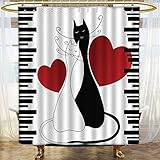 Mikihome Shower Curtains Sets Bathroom Cats in Romantic Kittens Pets Couple Two Tails Satin Fabric Sets Bathroom W66 x H72 inch